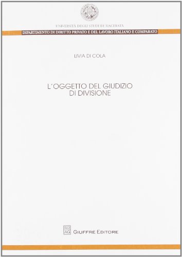 Compra L'oggetto del giudizio di divisione . SPEDIZIONE GRATUITA su ordini idonei. Nel libro si espone la ricostruzione del giudizio di divisione che si ritienepiù coerente con i principi generali su cui si fonda il processo A Cura Di: Livia Di Cola Livia Di Cola (Palestrina, 1972) è avvocato e docente di Ordinamento giudiziario presso l'Università di Macerata. Laureata in Giurisprudenza presso l'Università 16 mag 2018 L' oggetto del giudizio di divisione . Autore: Livia Di Cola . Category: Economia e diritto. Editore: Giuffrè. Anno edizione: 2011. Pagine: XII-538 p. CAPITOLO IV LA NATURA DEI PROVVEDIMENTI EMESSI NEL CORSO DEL PROCEDIMENTO DIIVISIONE ED I RIMEDI ESPERIBILI CO 315. Bibliografia. Acquista online il libro L'oggetto del giudizio di divisione di Livia Di Cola in offerta a prezzi imbattibili su Mondadori Store. Nel libro si espone la ricostruzione del giudizio di divisione che si ritienepiù coerente con i principi generali su cui si fonda il processo A Cura Di: Livia Di Cola L' oggetto del giudizio di divisione . EAN: 9788814157448. Autore: Livia Di Cola . In commercio dal: 16/05/2018. Pagine: XII-538 p. Editore: Giuffrè. L' oggetto del giudizio di divisione è un libro di Livia Di Cola pubblicato da Giuffrè nella collana Univ. Macerata-Dip.dir.privato e del lav.: acquista su IBS a